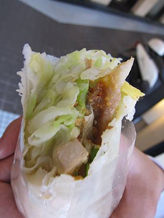 春捲裡除了豐富的青菜以外,和台北不同的是還有蝦仁、新鮮蠶豆,老闆用的甜花生粉是帶有顆粒的,肉則是蒜泥白肉。甜甜鹹鹹的豐富口感令人驚豔的好吃!!第一次吃到新鮮蠶豆,口感跟馬鈴薯很類似。
