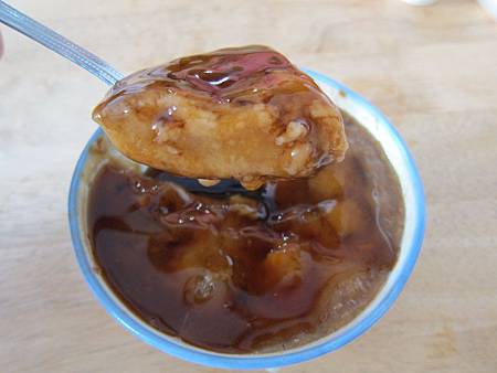 吃完春捲後,就要去嘗嘗看網友推薦的"富盛號碗粿"囉~因為平常對碗粿沒有特殊喜好,所以也不知道怎麼辨別好吃與不好吃,哈~但整體而言還不錯啦,QQ的不會太軟太爛,醬汁顏色看起來很深,吃起來卻不會死鹹,古早的口味,我想長輩應該會很喜歡吃吧。旁邊桌上放著年輕一代的老闆,即將推出的專屬送禮包裝袋,品牌形象鮮明、很可愛。