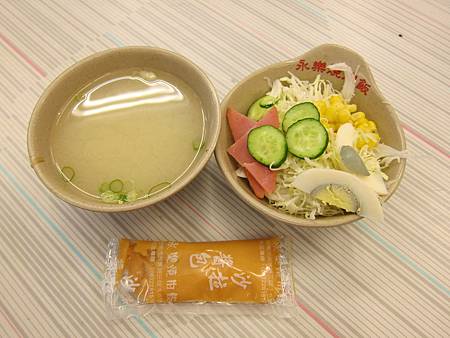 因肚子已經飽到不行,加上看到"永樂燒肉飯"長長的排隊人龍,所以晚上才又來吃燒肉飯,看看到底有多厲害! 定價60元的招牌燒肉飯附沙拉還有味增湯,這價格實在太驚人~而不只燒肉飯,雞腿飯也是只要65元喔!!燒肉飯的肉是薄的,和原本內心畫面中的日式燒肉不太一樣,但甜甜鹹鹹、帶有碳烤香味的肉片和筍絲,好吃到不行,不知不覺就連肉帶飯全吃了下去。台南美食真的名不虛傳,重點是價格也都很親民~推薦大家到台南市區的時候,一定要來永樂市場吃美食喔。